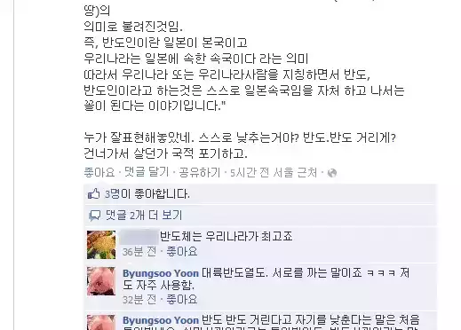 잘못된 지식의 대표적인 예. 반도(半島)라는 말이 일본인들이 한국을 비하하기 위해 만든 조어(造語)라는 설이있는데, 음모론에 불과하므로 무시하자. 많은 게르만어, 켈트어, 그리고 발트어, 슬라브어와 헝가리어에서 “삼면이 바다로 둘러싸인 땅”에 해당하는 단어는 “절반-섬”이라는 의미를 가지고 있다. http://mirror.enha.kr/wiki/%EB%B0%98%EB%8F%84 반도사관으로 검색한 결과 http://www.google.com/custom?client=pub-3794288947762788&forid=1&channel=4183257091&ie=UTF-8&oe=UTF-8&safe=active&cof=GALT%3A%23008000%3BGL%3A1%3BDIV%3A%23336699%3BVLC%3A663399%3BAH%3Acenter%3BBGC%3AFFFFFF%3BLBGC%3A336699%3BALC%3A0000FF%3BLC%3A0000FF%3BT%3A000000%3BGFNT%3A0000FF%3BGIMP%3A0000FF%3BFORID%3A1&hl=ko&q=%E5%8D%8A%E5%B3%B6%E5%8F%B2%E8%A6%B3 그럼 댁들도, 열도열도 대륙대륙 거리지 마라.
