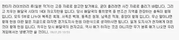 아는 곳에서 일어났던일.일본 신키겐사의 트루스인판타지(Truth in Fantasy)의 중국편의 서문에 있는 내용을 발췌해서 약간 올렸던 적이 있습니다. 물론 개인 참고용으로요. 황제 헌원과 치우의 대결에 대한 것을 간단히 서술한 내용이었는데어느분이 답변이 문득 떠올라서 스샷찍어서 올려봅니다.여튼 자료로 써주라고 한것도 아니었는데 말이죠.그나저나 고조선이라는 나라는 들어봤어도, 배달국 이라는 나라에 대해서는 아직 사료로써 확실하게 나온것이 없는듯 합니다. 아마도 저런 내용이 있는 […]