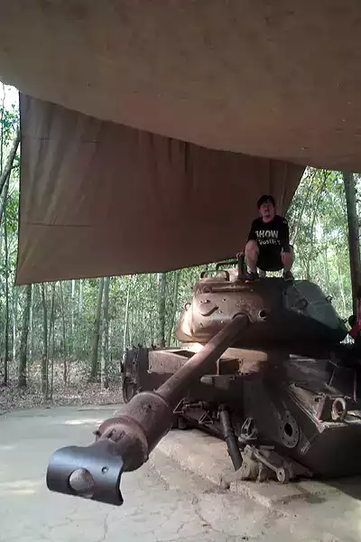 베트콩들의 지하땅굴이 거미줄처럼 엮인 구찌터널(고구마땅이라는 뜻)을 가는 곳중에 입구부분.