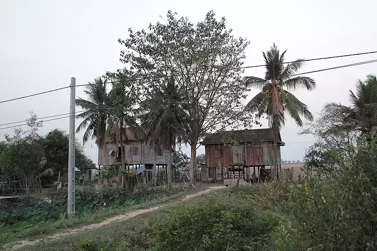 대부분 지상가옥은 캄보디아가 우기때 물에 잠기기 때문에 지상가옥을 짓는거라고 생각하지만, 실제는 지면의 복사열에 너무 쎈 탓에, 그것 막기위해서 지상가옥을 짓는 다고 하는군요. 시골 대부분의 가옥들이 저렇습니다.