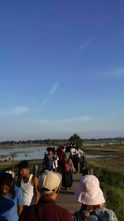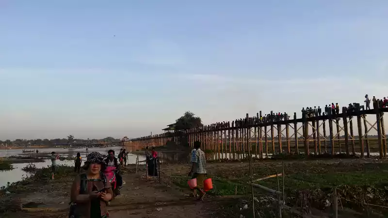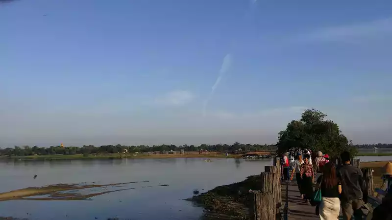 만달레이의 유명한 일몰 장소인 우베인 다리의 전경