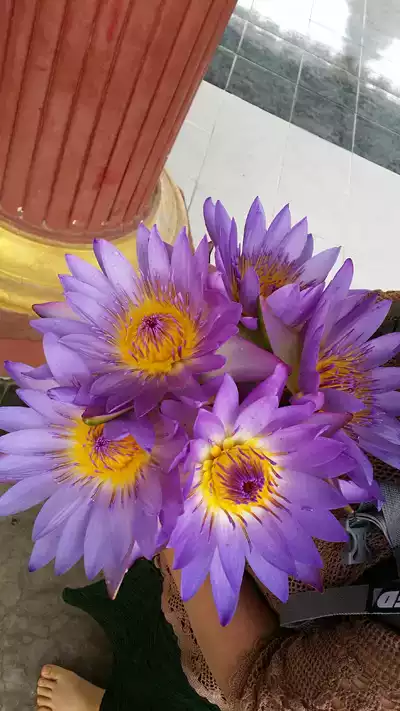 파야 앞에서 파는 연꽃.