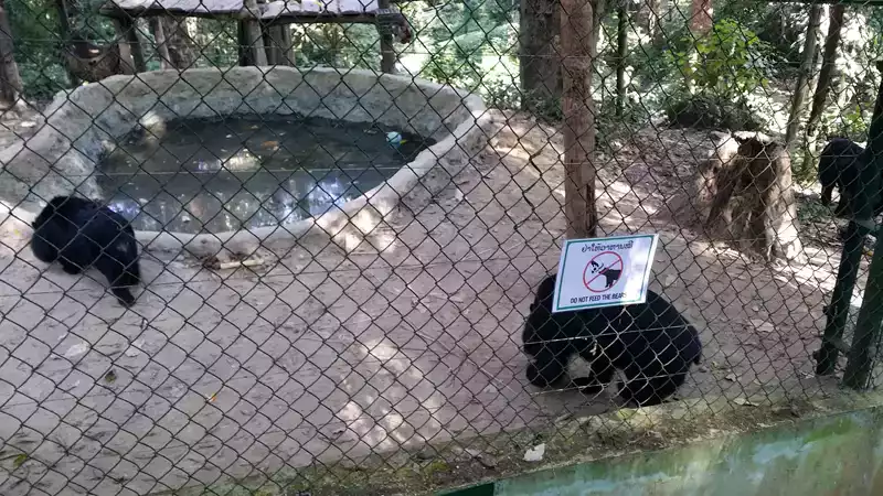 쾅시폭포안에 학대받거나 불법 사육받던 곰을 구출해서 보호하는 곳이 있었습니다.
