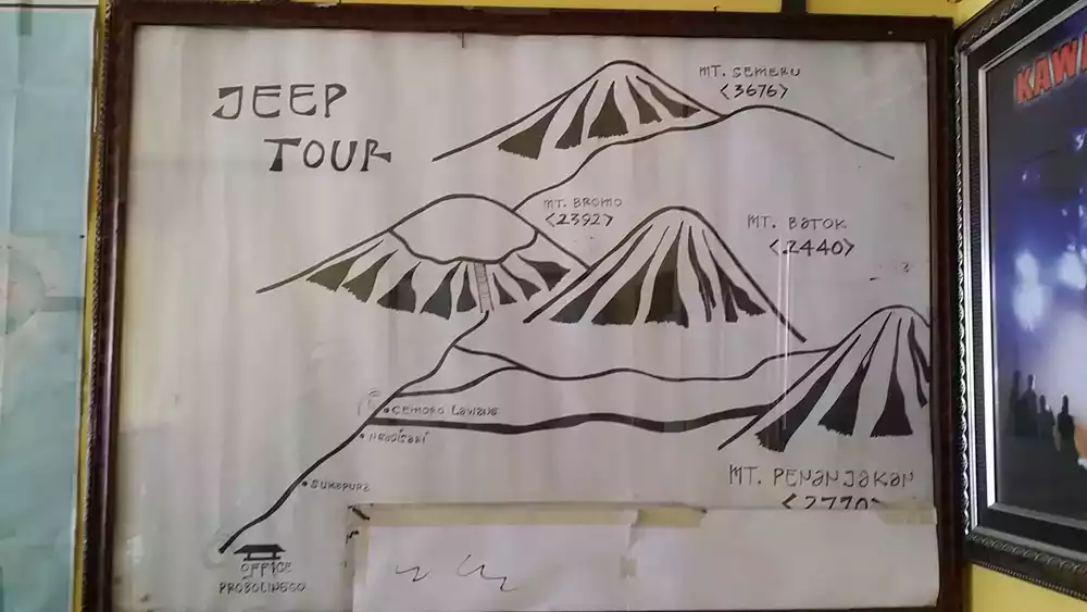 원래는 브로모산 건너편에있는 바톡 산에서 브로모의 분화구를 전망하는 투어인데, 브로모한테 폭발해버린 나머지 너무 위험하여 좀더 떨어진 산으로 가게되버린것입니다.