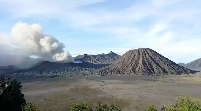 브로모화산에서 연기가 모락모락 나오고있습니다.