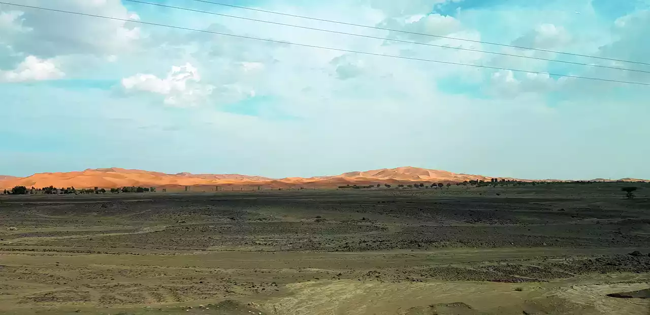 황무지가 펼쳐지는 끝에 모래사막이 보이기 시작했습니다.