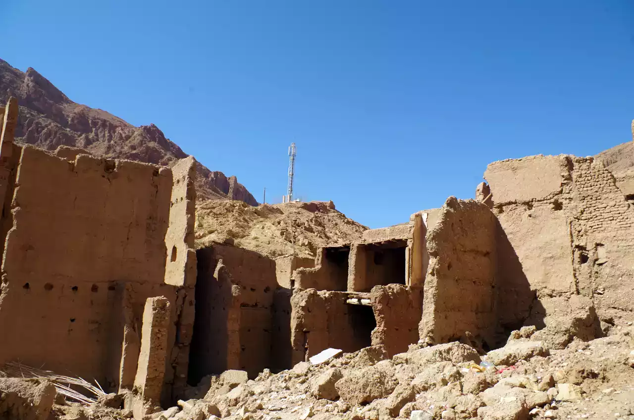 흙집의 전통가옥과, 현대가옥이 붙어있어. 기묘함을 줍니다.